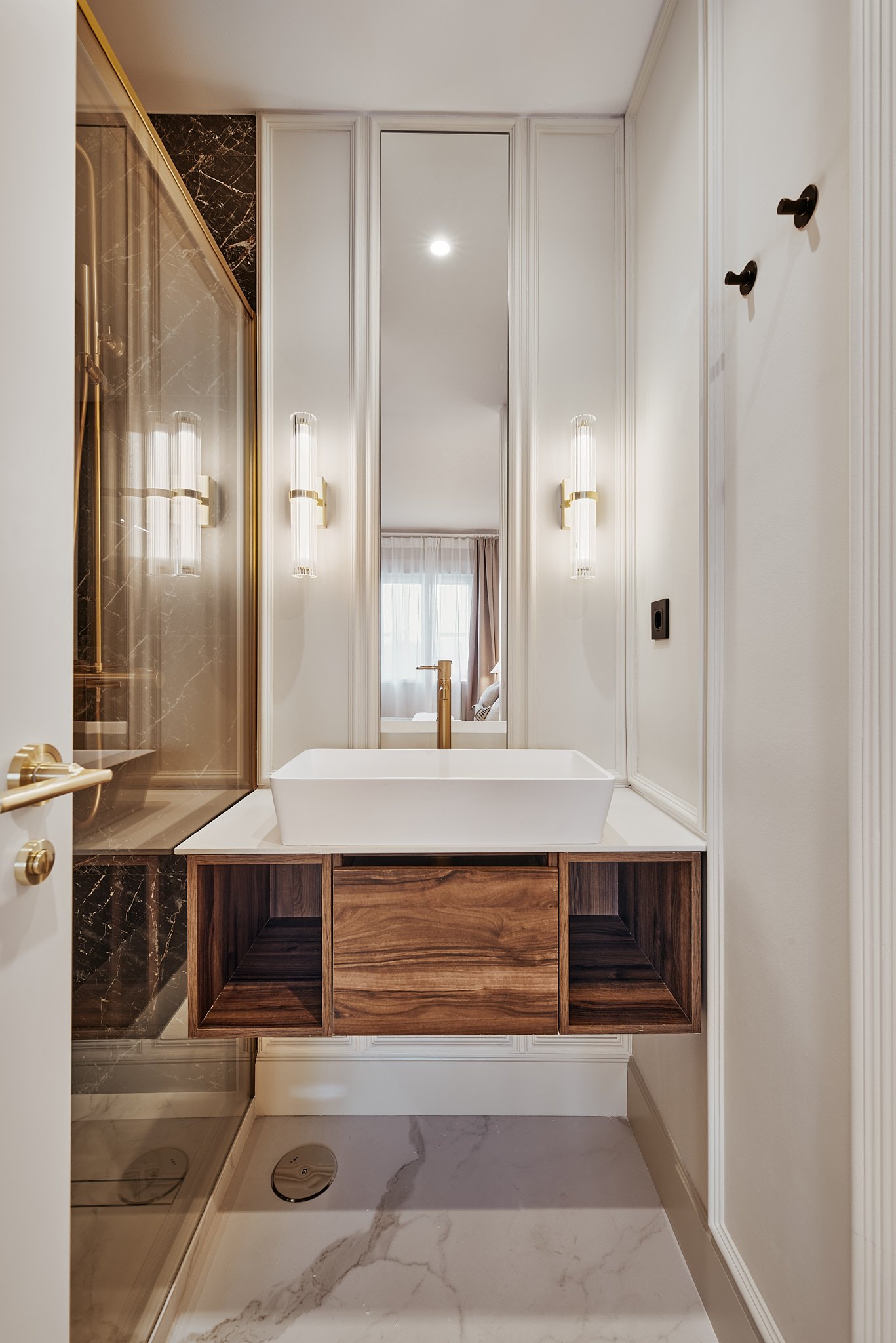 La zona de descanso se compone de tres dormitorios cuidadosamente diseñados y tres baños completos, cada uno resuelto con materiales actuales y soluciones contemporáneas.