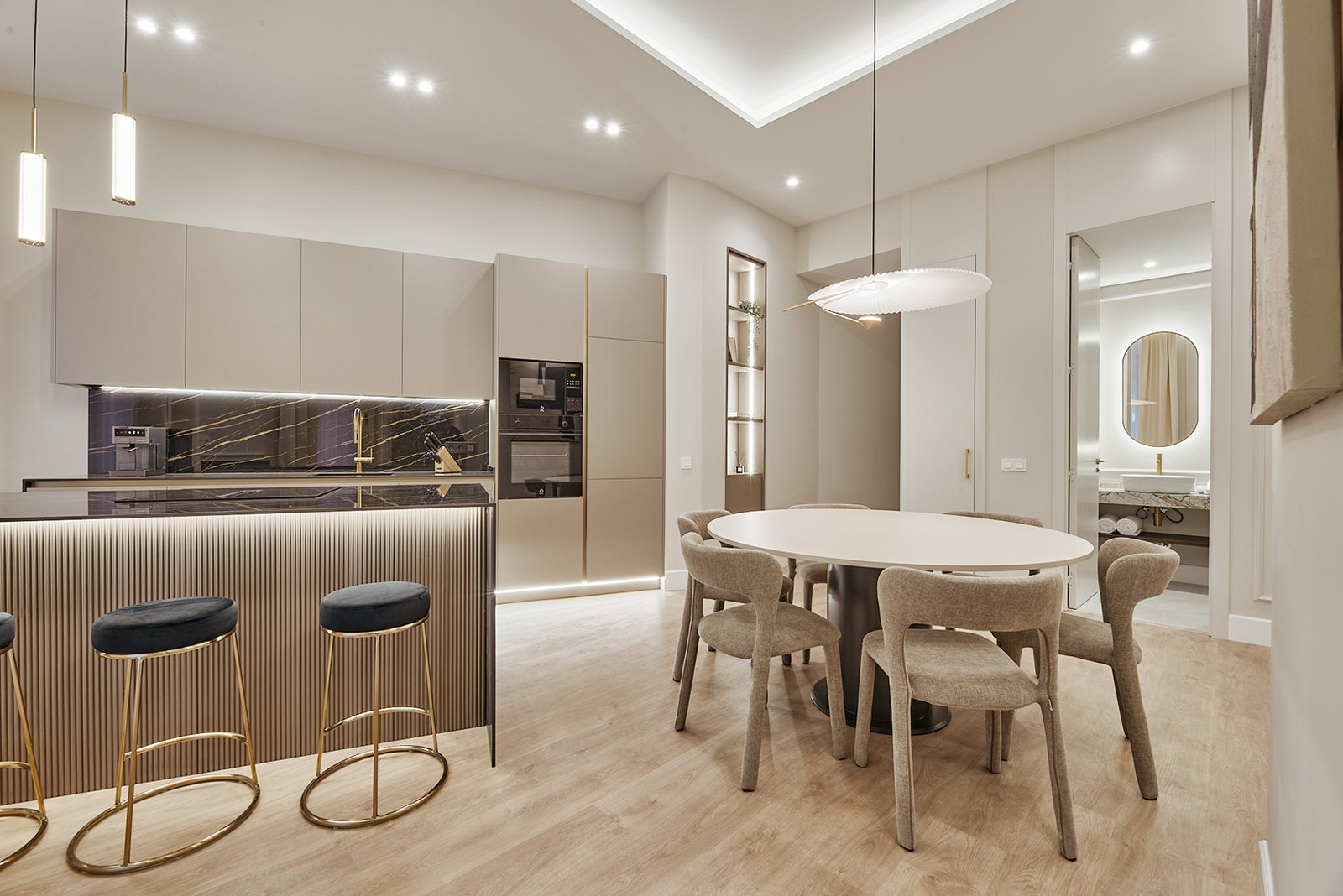 Un piso de 146 m2 catastrales donde la luz, el diseño y la esencia del centro histórico de Madrid se encuentran en perfecto equilibrio.
