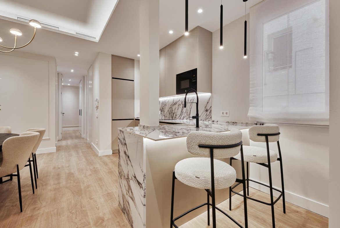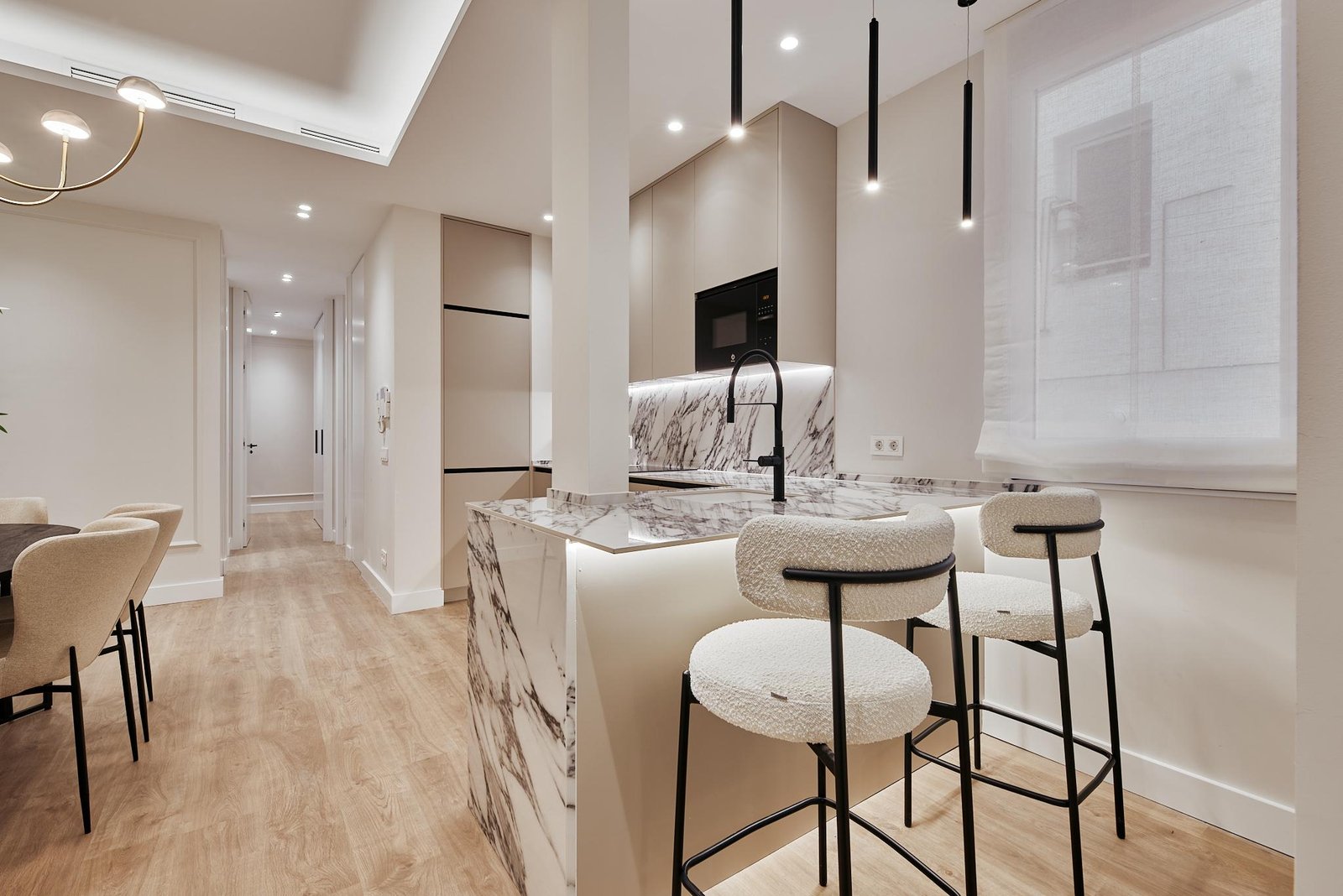 Acogedora vivienda interior de 81 m2 catastrales, ubicada en una primera planta de una finca clásica de 1930 con ascensor, en la calle Conde de Peñalver, una de las arterias más representativas del Barrio de Salamanca.