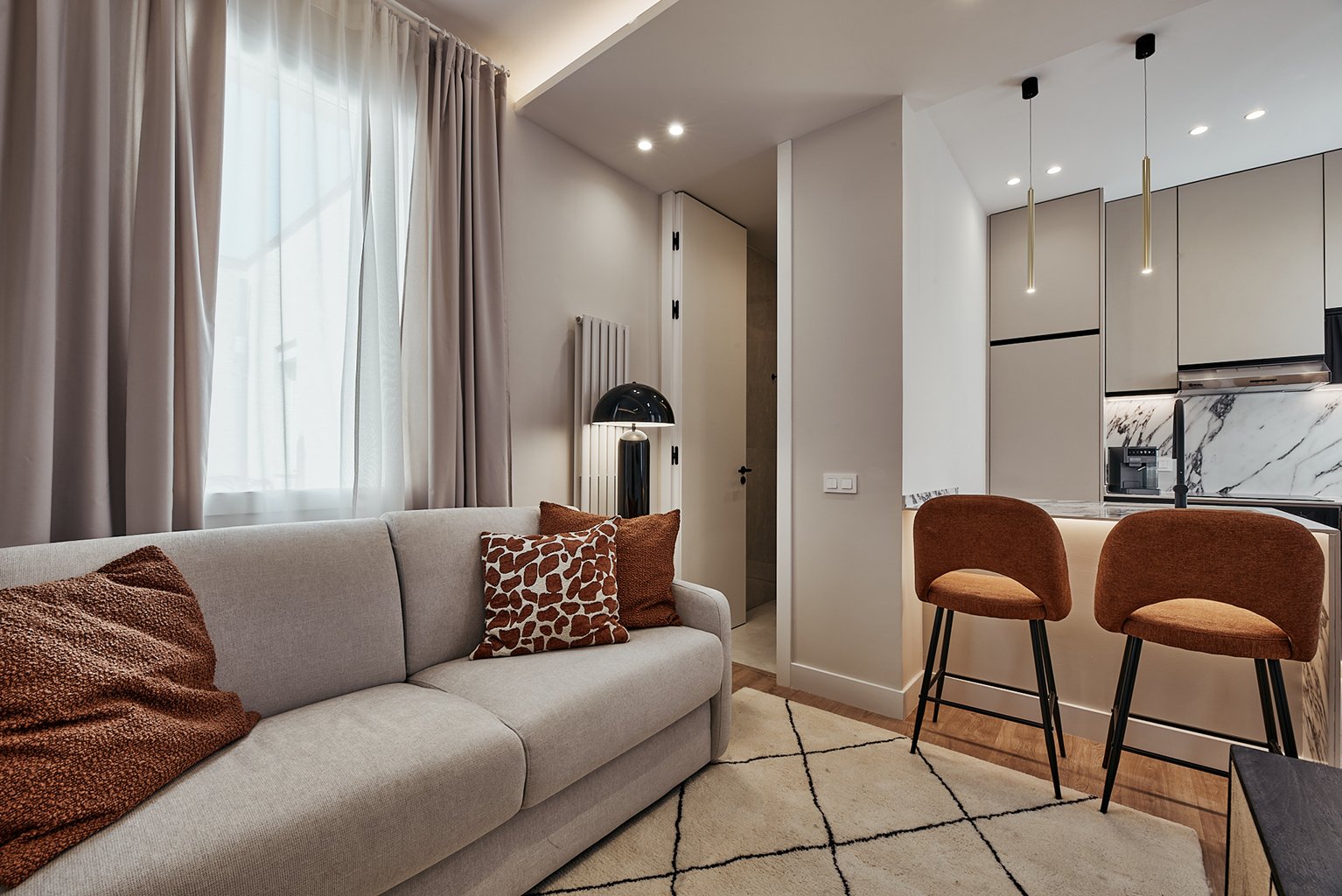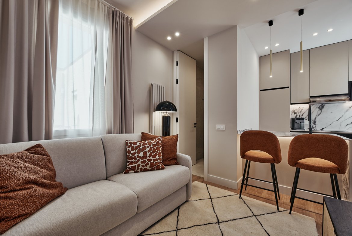 Un ático de 120 m2 catastrales con 60 m² de terraza privada, donde la luz y el diseño contemporáneo se encuentran sobre los tejados del barrio de Salamanca.