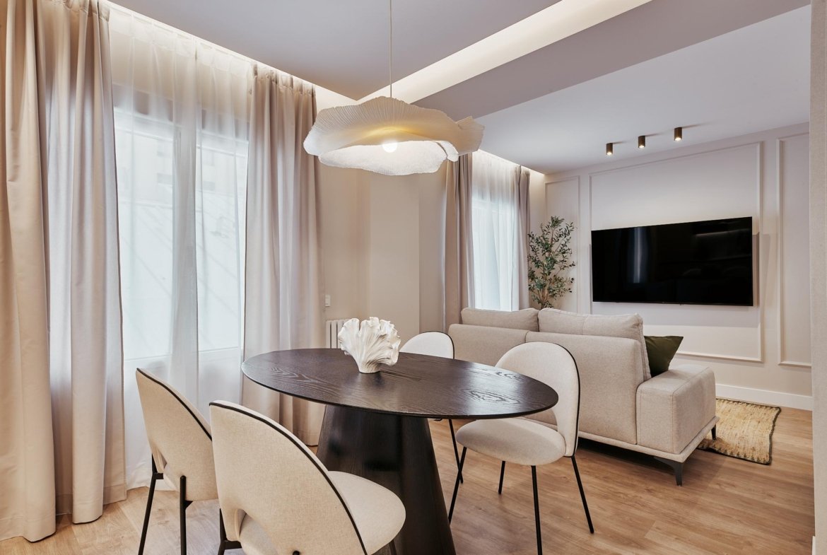 Vivienda transformada de 79 m2 catastrales, ubicada en una primera planta interior de una finca de 1960 con ascensor, en la calle Hilarión EAslava, en pleno Chamberí.