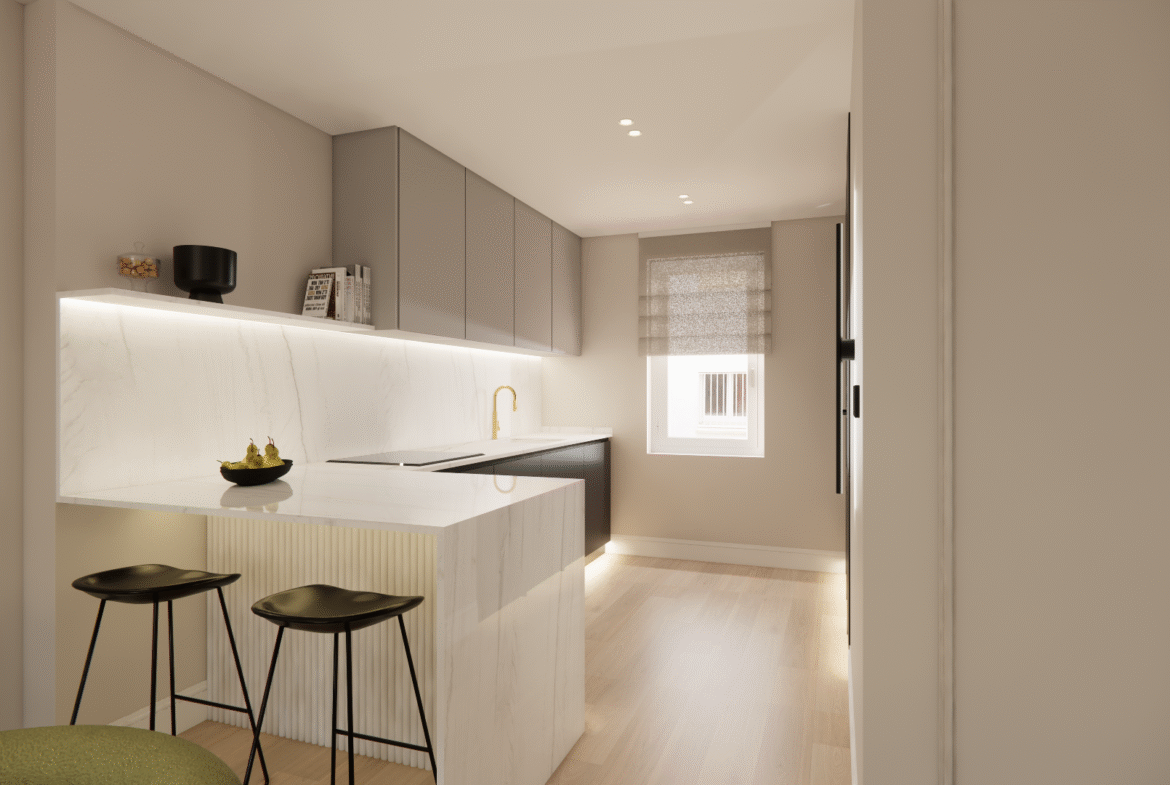 Situada en Ibiza 64, esta propiedad ha sido reformada y amueblada, ofreciendo un espacio equilibrado y acogedor. El salón-comedor, orientado al suroeste, recibe una excelente luz natural y se convierte en el eje principal de la vivienda. La cocina, totalmente equipada, se integra de forma práctica y elegante en el conjunto.